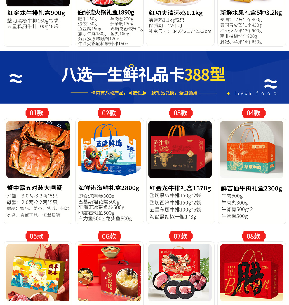 1888型生鲜自选卡8选1食品卡「全国配送」